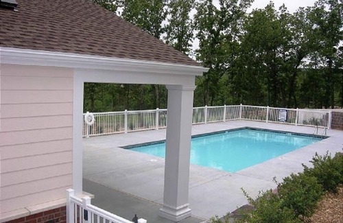 Elevator access to this luxury non-smoking 3 bedroom / 3 bath condo with walk in showers overlooking pool at Eagle Bunker in Branson Hills. Master bedroom has jetted tub. 1733 sq ft.