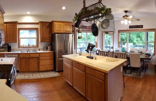 This lakeside home is the perfect gathering place for your next family outing! With 5 bedrooms it can accommodate up to 14 guests and has everything you need to keep them entertained. The children's rooms are uniquely themed and the basement features a private spa, game room, poker table, movie theater room with an xbox and corn hole bag game for all to enjoy. All just steps away from the swimming pool and boat dock located at the best kept fishing secret in the Ozarks, Lake Taneycomo.