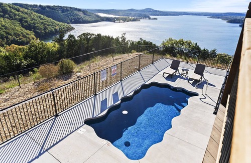 Our luxury lodge has has been purposefully created for both large and small groups to enjoy! Wild Horse Lodge features 5 bedrooms and 7 bathrooms. Each bedroom is an ensuite with its own private bath. Our luxury lodge features a large open kitchen, dining room, and living room with vaulted ceilings and limitless panoramic views of Table Rock Lake and Ozark Mountains. Outside you will find the lodge's own seasonal *PRIVATE OUTDOOR POOL and HOT TUB overlooking expansive views of the lake and featuring lounge chairs and a beautiful pergola for added shade. You'll love the carefully appointed outdoor space featuring tons of outdoor dining, a large sectional, fire pit, daybed swing, private hot tub, and more! (* For private outdoor pool at our lodge please ask host for specific dates if outside of Memorial Day-Labor Day).